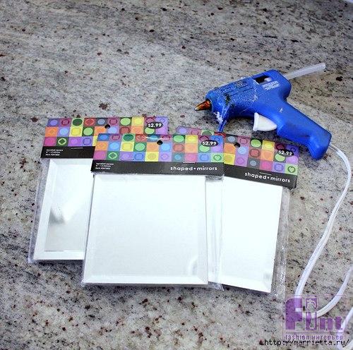 Для работы нам понадобятся зеркала с огранкой. В данном мастер-классе такие зеркальные квадратики готовые, но можно попросить нарезать их и в обычной зеркальной мастерской. За отдельную плату на таких квадратиках могут сделать также фаску (скошенный край).