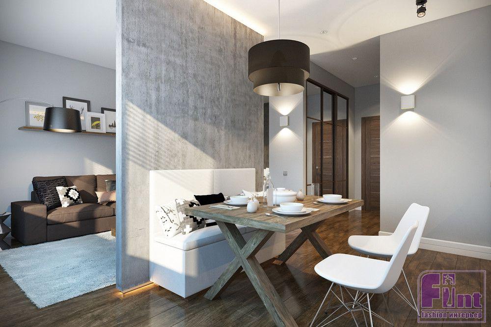 Стиль этого интерьера получился современным и динамичным, городским. Мебель и предметы для этого проекта подбирались очень хаотично, но именно они и сделали интерьер интересным. В проекте использовано много натуральных материалов, природных цветов и урбанистических фактур, натуральные ткани, мебель простых форм и стильные светильники. Ведь именно спокойные, мягкие цвета в оформлении маленькой квартиры или комнаты придают пространству больше воздуха и создают визуальную иллюзию большего пространства, чем есть на самом деле.