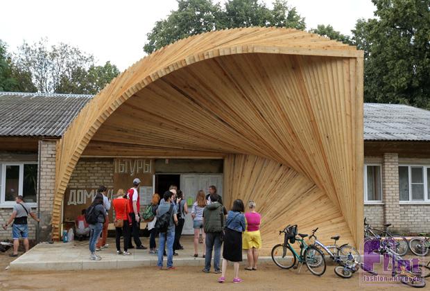 «У людей это место вызывает много воспоминаний. Кто-то здесь работал продавцом, кто-то — кассиром. И это въезд в деревню, самая главная площадь. Нам хотелось, чтобы отсюда исчез символ разрушенной жизни. Мы строили без денег, со старым материалом, оставшимся от других работ. Самое главное — должно было произойти чудо, дряхлую руину нужно было сделать храмом искусства. И нам это удалось», — заключает Полисский.