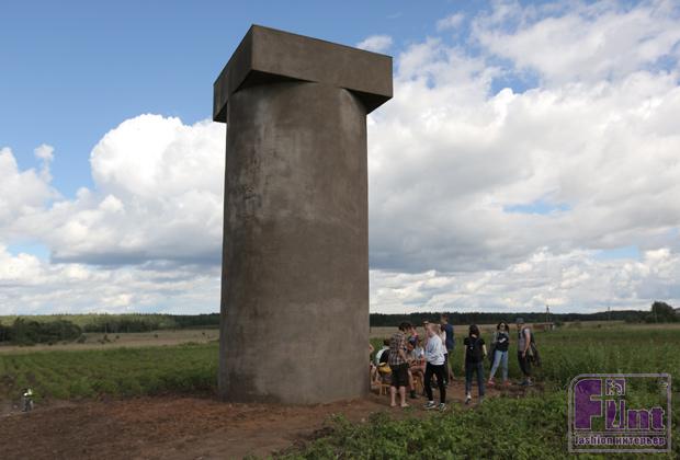 Художники Сергей Чобан и Агния Стерлигова возвели в картофельном поле геометрически простое архитектурное строение — колонну с горизонтальным перекрытием, похожую на водонапорную башню старого образца. Так как большинство арт-объектов на «Архстоянии» делали из дерева, они решили отступить от этой традиции. Художники облицевали башню земляной штукатуркой, хотя каркас все равно оставили деревянным. Картофель здесь не рос — его высадили как часть композиции.