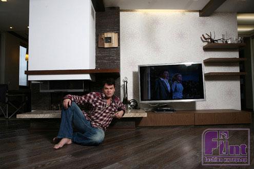 Спальня в этом доме — священное место, где нет телевизора. Это решение приняла Юля, чтобы ТВ не отвлекало супругов от общения друг с другом. Но Евгению есть где посмотреть новости и передачи. Телевизор висит на кухне, стоит в главной комнате и его кабинете, который (обязательно!) присутствует в любом жилище, которые были у этой семьи.