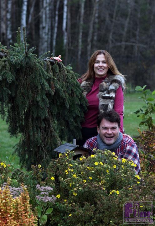 На участке земли в 15 соток расположился целый ландшафтный парк. Есть красавицы ели, декоративные кустарники, камни, клумбы, даже необычные пеньки и коряги. Это дело рук Юлии, она продумывала, высаживала, ухаживала. Сам Женя признался, что дизайном пространства вокруг дома не занимается. Он выходит на участок лишь повисеть на брусьях и перекладинах, которые «выросли» рядом с альпийской горкой.