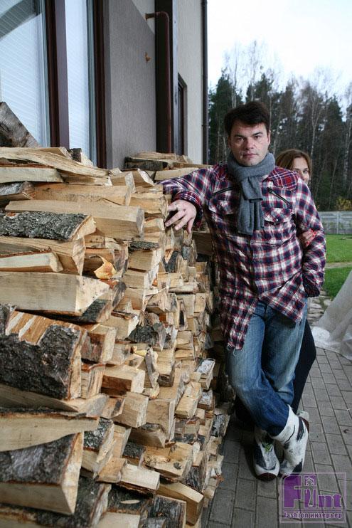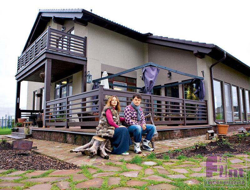 Интерьер дома четы Дятловых очень необычный. Чего стоит изогнутая лестница в центре просторного зала и стена из дров, на которой висят часы. Это полностью заслуга хозяев. Евгений рассказал, что как только дело дошло до внутренней отделки, у них начались разногласия с дизайнером. Специалист предлагал типовые решения, супруги же хотели что-то особенное.