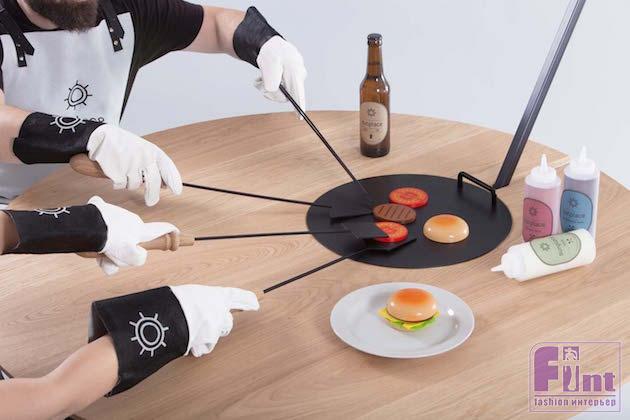 К комплекту мебели прилагаются все необходимые инструменты – это щипцы и лопатки, которые используют для безопасного манипулирования мясом или другой пищей, приготавливаемой на солнечном барбекю. Инструменты имею длинные и тонкие металлические ручки, которые не только выглядят довольно изящно и стильно, но и помогают обезопасить руки повара от ожоогов. Представленное изобретение – это пока всего лишь прототип (что можно заметить даже по фотографиям), но, кто знает, может быть его использование войдет в обиход и будет пользоваться популярностью благодаря своей экологичности и оригинальности.