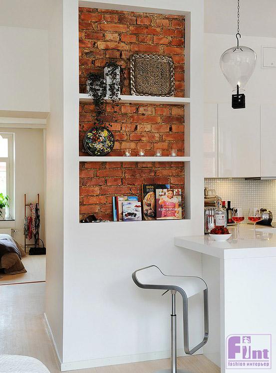 3. Углубления под бытовую технику, камин и аквариум. Эти ниши выполняют сразу две задачи. Холодильник или стиральная машинка не бросаются в глаза, но при этом лёгкий доступ для ремонта обеспечен.