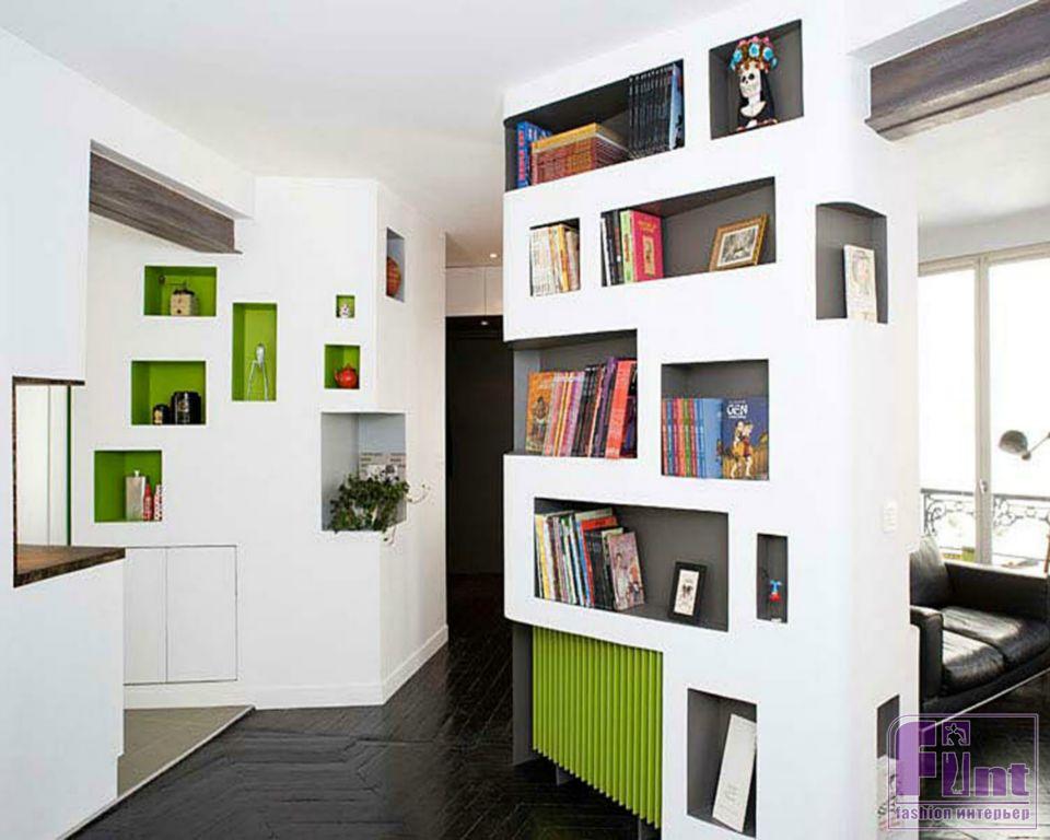 Теперь же ниши в наших помещениях появляются намеренно, иногда уменьшая полезную площадь помещения, иногда увеличивая её. Это зависит от того, в чём выполнено углубление: стене или гипсокартонной фальш-панели. Конечно, лишние 15-20 см от «бесполезно простаивающей» стены всегда пригодятся в хозяйстве, но для пробивания отверстий в несущих стенах потребуется разрешение БТИ (его бывает трудно оформить).