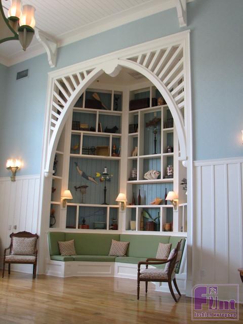 6. Ниша как элемент декора. Это могут быть углубления, украшенные картинами, интересным фактурным материалом (дерево, камень, венецианская штукатурка), витражами или воздушно-пузырьковыми панелями. Чаще всего вертикальные ниши располагают в ряд, а горизонтальные – друг под другом или лесенкой. Желательна симметричность ниш на стене. Форма их должна сочетаться с очертаниями мебели, дверей и окон (например, арочные ниши и стрельчатые окна).
