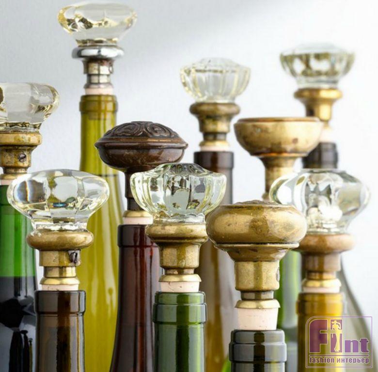 Как обещали: винные пробки, украшенные стеклянными ручками от старинной мебели.