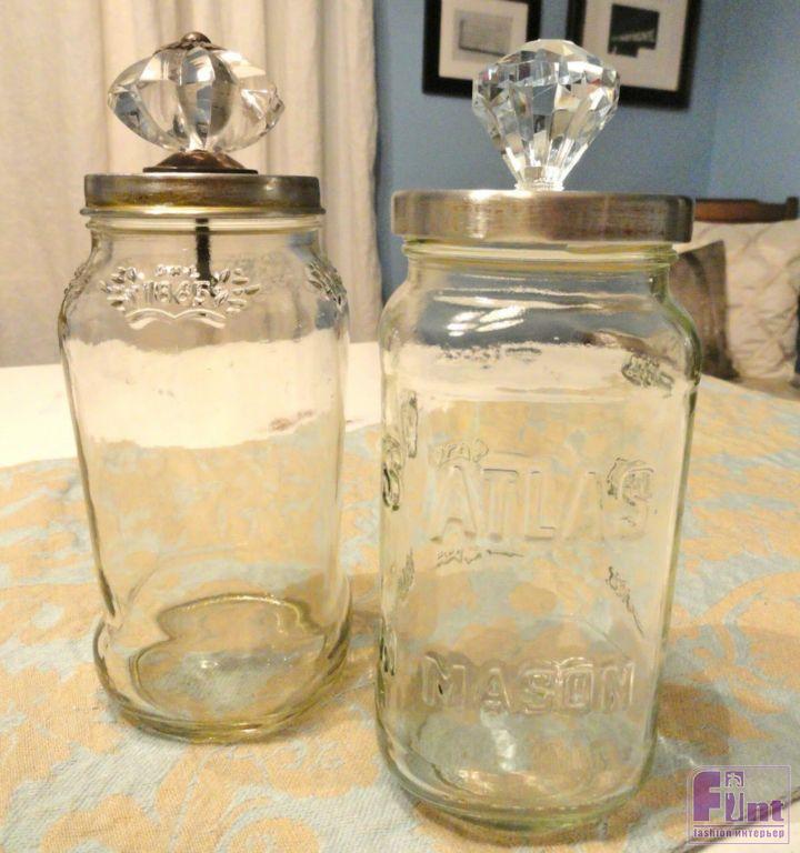 Банальные ёмкости для сыпучих продуктов можно сделать более симпатичными и винтажными. Если удастся собрать несколько неодинаковых ручек от шкафов или комодов, будет ещё интереснее.