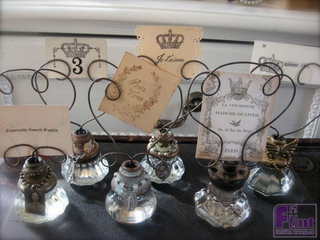 Поскольку у большинства гранёных ручек передняя часть абсолютно плоская, из них можно сделать изысканные держатели для фотографий или настольных табличек. Всё, что вам понадобится — немного проволоки, несколько ненужных цепочек, подвесок, брелоков или амулетов.