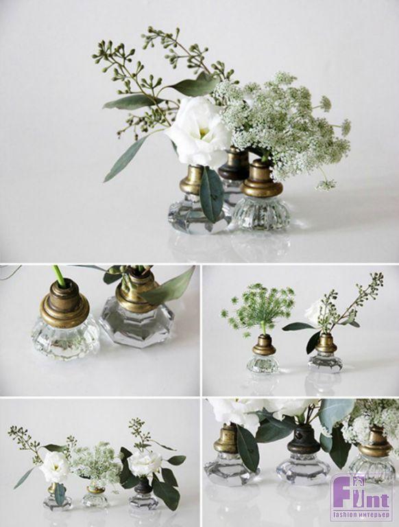 Хрустальные дверные ручки легко превратить в изящные миниатюрные вазочки для цветов.
