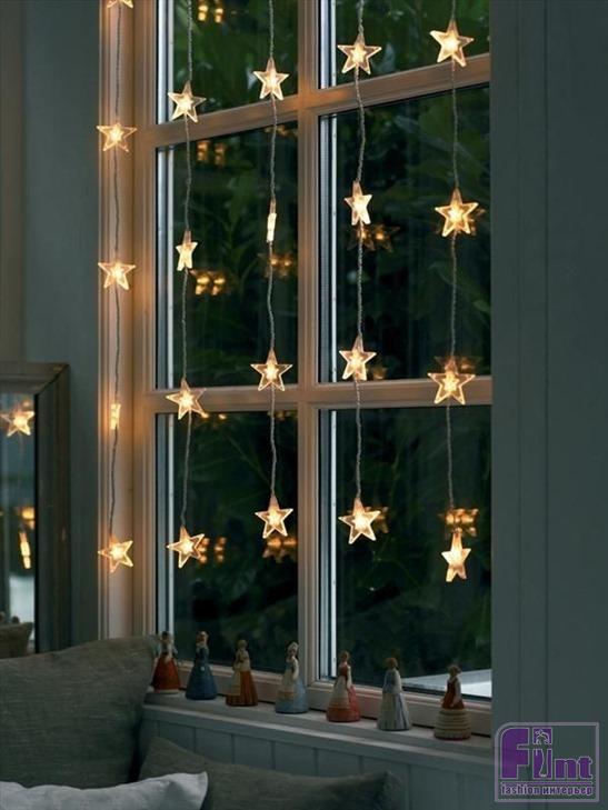Световые электрические гирлянды-шторы сделаны как раз для оформления окон к зимним праздникам: звездочки и снежинки, мерцающие за шторами, создадут уют в комнате и, к тому же, будут очень красиво смотреться с улицы.
