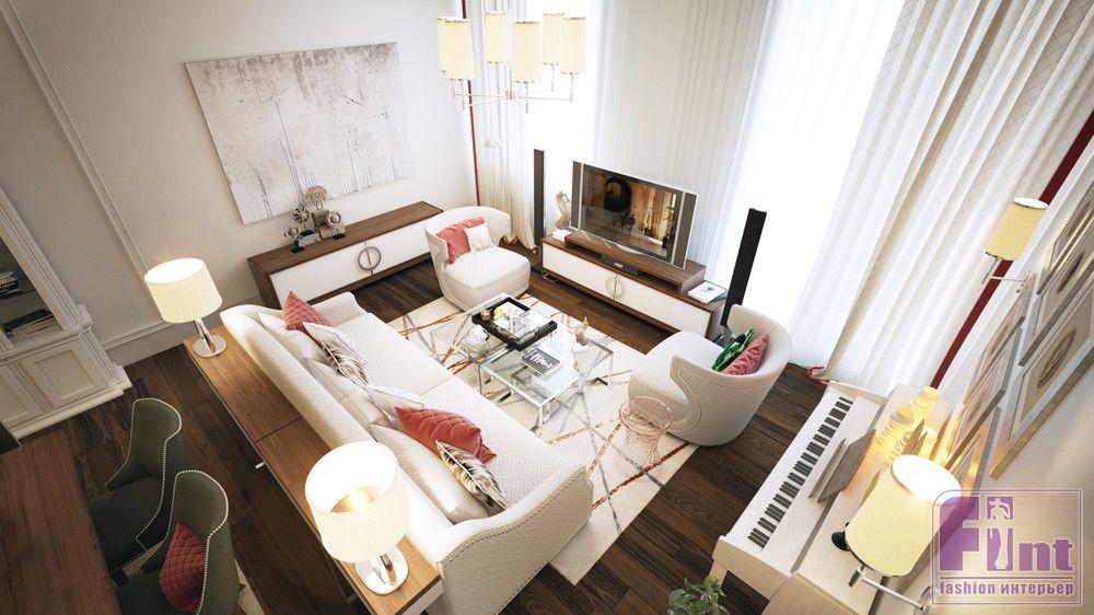 Первым шагом в работе дизайнера стал выбор цвета. В основу колорита легли нейтральные оттенки стен, которые смотрятся особенно выгодно в сочетании с тёплыми акцентами тканей и предметов. На следующем этапе Дмитрий определился с зонированием помещения: оно было выполнено в соответствии с уже заложенными в архконцепцию планировочными и стилистическими решениями. На выходе первоначальная конфигурация зон осталась той же, но с добавлением некоторых черт, свойственных дворцовой анфиладе.