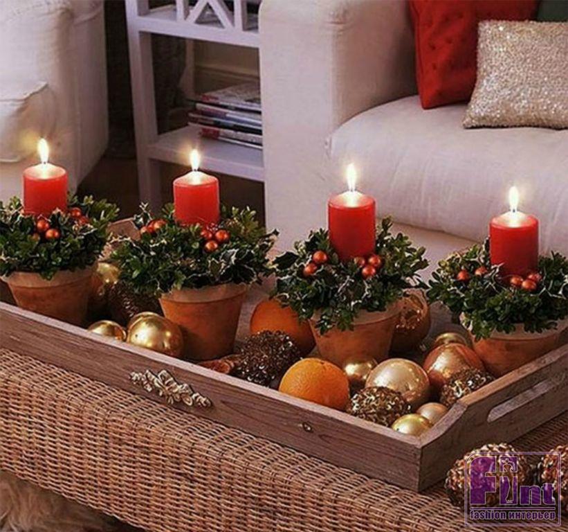 Дополнить преобразившийся интерьер могут свечи и подсвечники, выполненные в новогодней тематике, а также блестящие гирлянды и яркий серпантин. Правда, если в доме есть животные, с гирляндами и серпантинами нужно быть осторожнее – очень уж они привлекают внимание своим блеском.