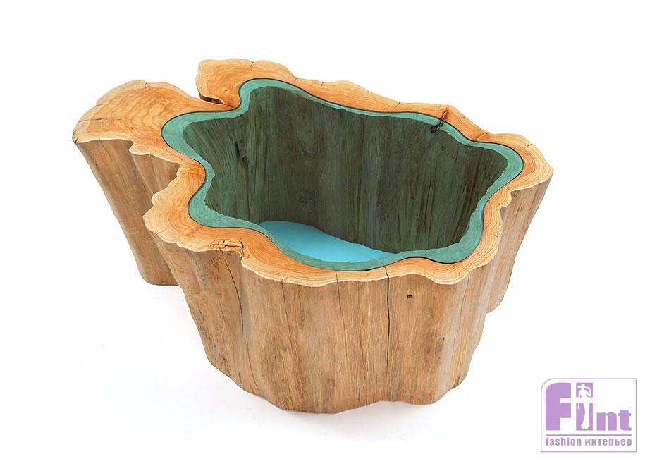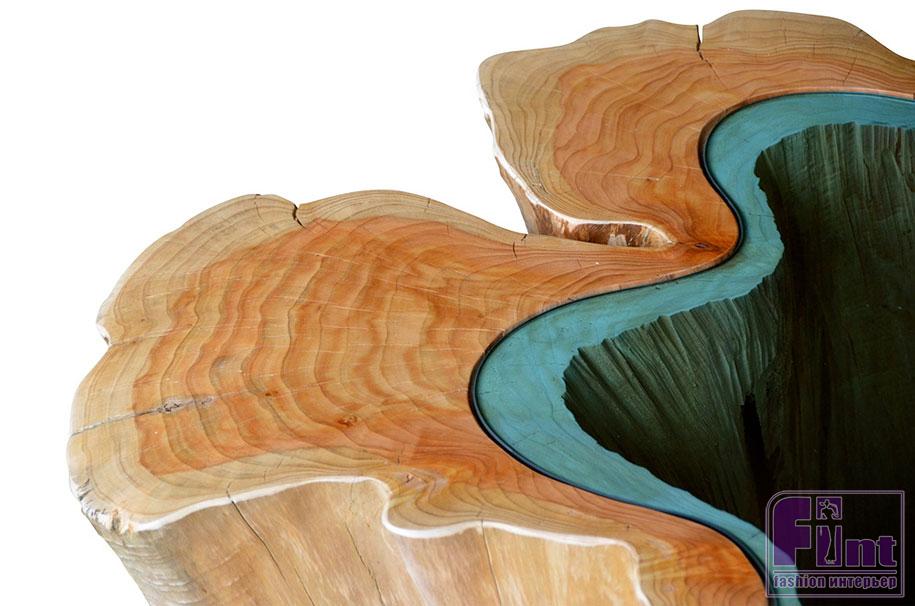 Грег Классен – художник и дизайнер, который создаёт уникальную и единственную в своём роде мебель из старых вековых деревьев и стеклянных вставок. Его работы настолько органичны с природой, что похожи на реки и озера, текущие в природе.