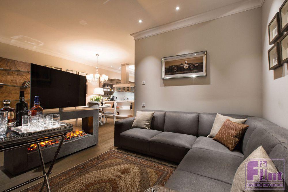 Важным элементом проекта стал также электрокамин Dimplex Jenua с двумя топками. Внутри МДФ корпуса с каменным шпоном скрыта проводка для телевизора. Панель установили на ротационный кронштейн, позволяющий смотреть любимые фильмы из любой точки помещения. Особое внимание архитекторы и дизайнеры уделили инженерной составляющей. По просьбе заказчика, квартиру сделали «умной»: управлять электроприборами можно с помощью сенсорной панели.
