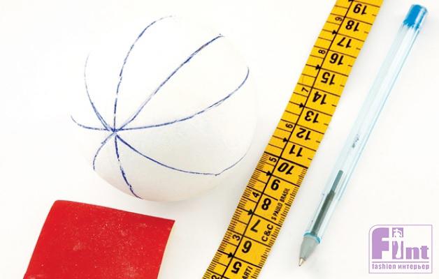 Пенопластовый шар нужно расчертить и надрезать канцелярским ножом.