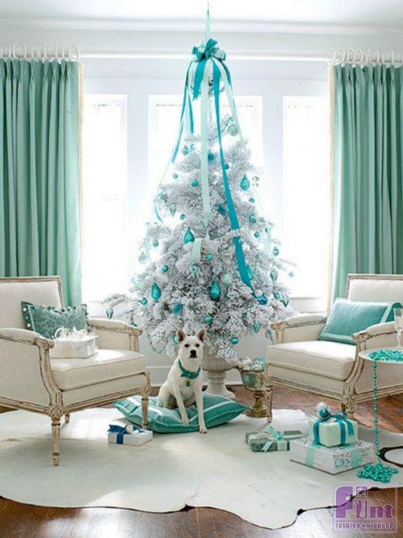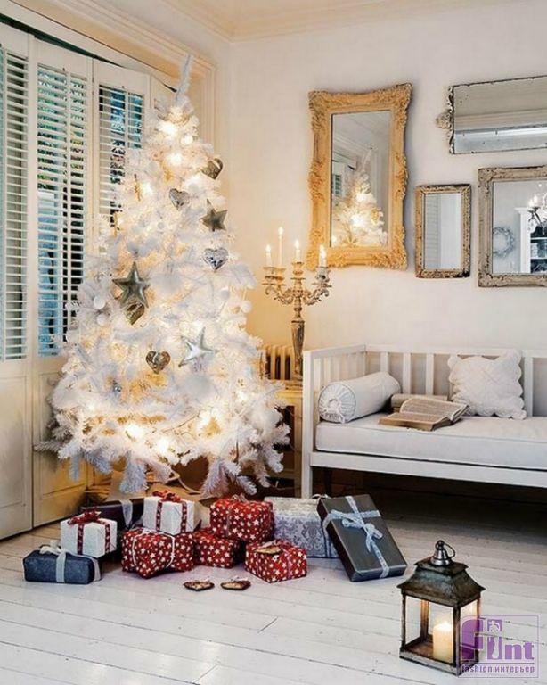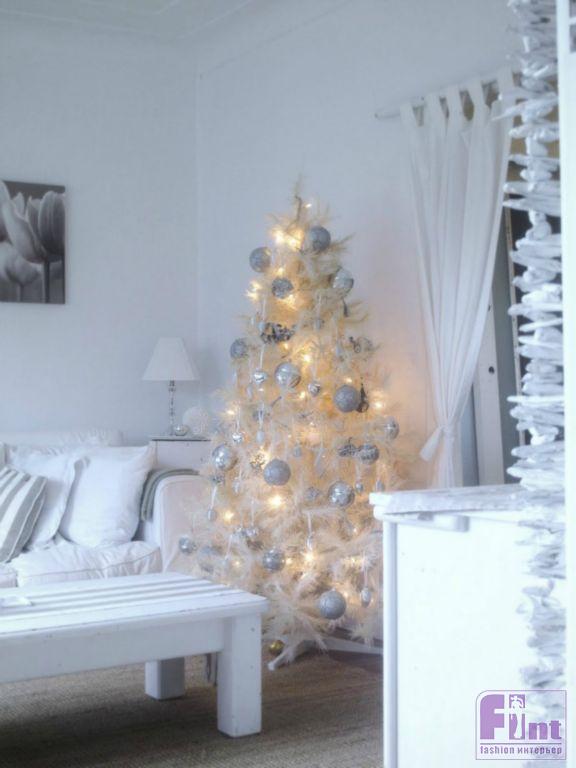 Приятно, воздушно, стильно, очень нежно, оригинально – так скажут гости о вашей белой ёлке, если вы не перегрузите её большим количеством дополнительных цветов и оттенков. Идеально использование не более одного-двух цветов. Цвет ёлочных игрушек выбирайте в соответствии с оттенками вашего интерьера. Оливковый диван? Зелёные игрушки. Голубые шторы? Такие же игрушки на белой ёлке. Не забывайте и про освещение. Белая ёлка тоже нуждается в новогодних гирляндах, как и её зелёные собратья. Но на белой ёлке гирлянды смотрятся в разы интереснее! А ещё, для белой ёлки отлично подойдут гирлянды с лампочками или светодиодами одного оттенка.
