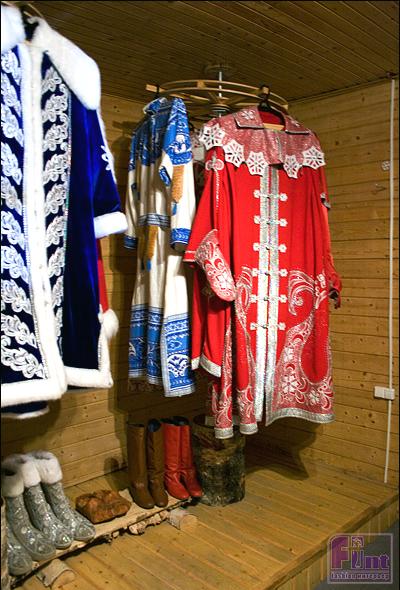 Вернёмся к дому, в котором живёт Дед Мороз. В его тереме хранятся самые разные подарки, которые присылают ему со всех уголков мира. Для этого даже отведена отдельная комната. В другой комнате собраны наряды дедушки на все случаи жизни: и летний костюм, и зимний, и для особых случаев, и даже лыжный спортивный костюм.