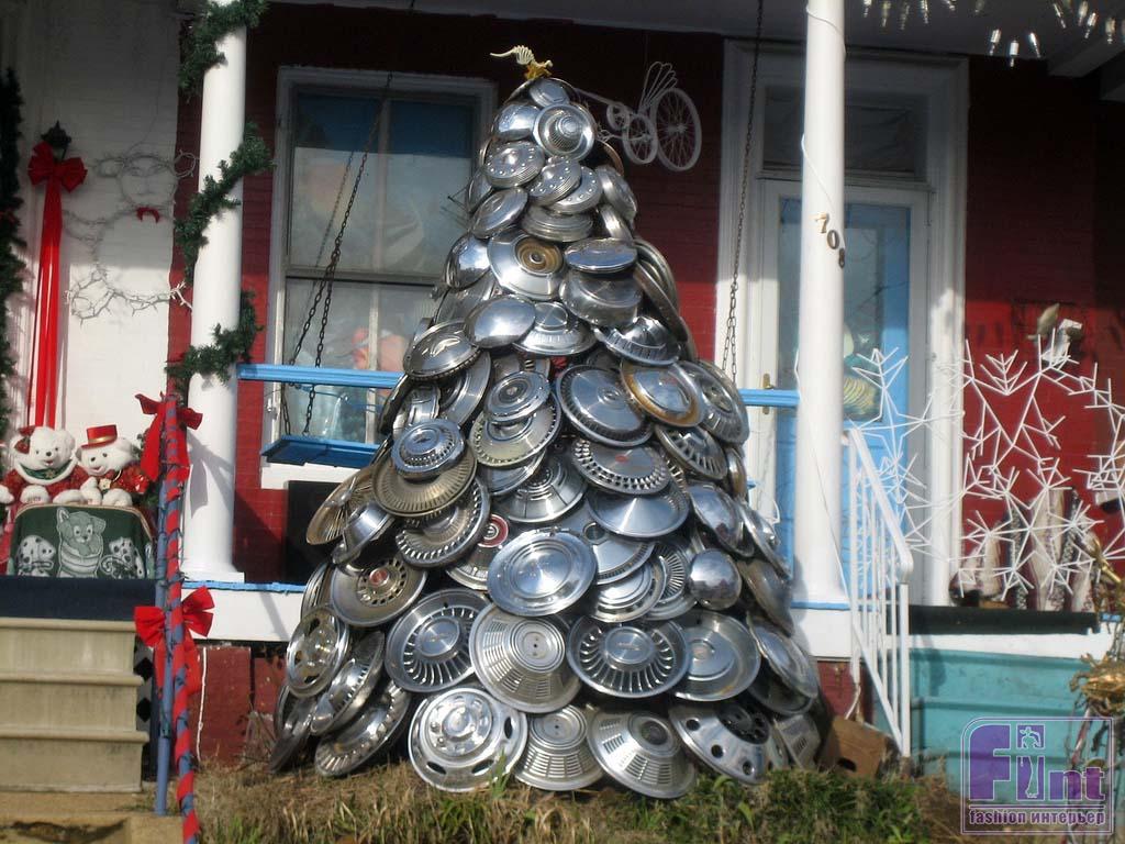 Если ни живая, ни искусственная ели не пришлись по душе, всегда можно украсить дом чем-нибудь оригинальным и необычным – стилизованными моделями ёлок, выполненными из самых разных материалов: вязаных клубочков, конфет, воздушных шариков, декоративных подушек, зелёных стеклянных бутылок, книг, мягких игрушек, деревянных брусков, живых цветов, бокалов с шампанским и т.д.