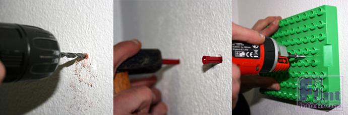 Для того чтобы из всего этого получилась замечательная LEGO-вешалка для ключей, нужно просто закрепить платформу от конструктора на стене при помощи шурупов. Для более аккуратного вида сверлите отверстия в платформе между рядами выступов конструктора так, чтобы шляпки шурупов можно было прикрыть дополнительными кубиками самого конструктора.