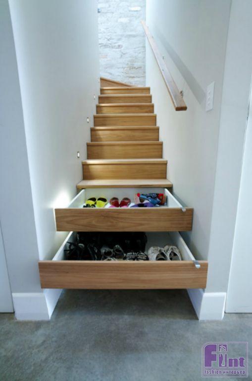 Можно использовать не только пространство под лестницей, но и сами её ступени. В них можно хранить сезонную одежду или мелочи. Существует немало идей, которые способны сделать из лестницы прекрасное и уникальное место для хранения вещей с творческой изюминкой.