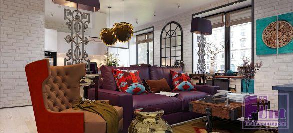Заказчица Дарьи, хозяйка трёхкомнатной квартиры в Москве, руководит собственным салоном красоты. Среди её увлечений - история искусств и чтение фэнтези. Отталкиваясь от этих фактов, дизайнер постаралась создать интерьер, отражающий характер своей клиентки. Стиль оформления сама Дарья определила так: «эклектика с добавлением этники и винтажа». Плюс смелое использование насыщенных цветов и необычных фактур.