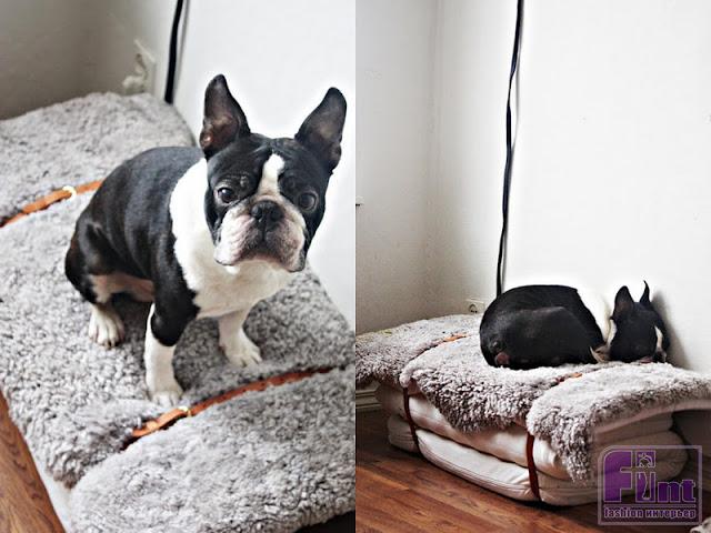 Если соединить двумя кожаными ремнями старый матрасик или подушку с небольшим куском овчины, получится отличный пуфик для вашего домашнего питомца! Если у вас в доме нет собачек или кошечек, то такой пуфик может стать отличным дополнительным аксессуаром для гостиной или детской комнаты.