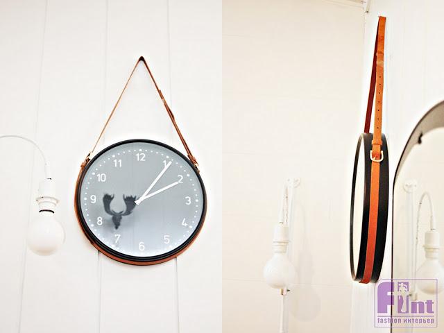 Если взять два одинаковых старых ремня, соединить их вместе и приклеить к обычным настенным часам, получатся совершенно другие, очень стильные часы, способные украсить любой интерьер. Лучше всего такая композиция смотрится в том случае, когда для декорирования вы выберете часы круглой формы. Крепить ремни можно разными способами: от двустороннего скотча и клея и до мебельного степлера (если корпус часов выполнен из дерева).