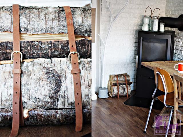 С помощью двух старых поясов можно не только сделать «красиво», но и «удобно»! Если связать ремнями несколько деревянных чурок, получится отличная декоративная вязанка дров, которой можно украсить свой интерьер, даже если у Вас нет печки или дровяного камина! Если же вы являетесь счастливым обладателем «семейного очага» с натуральным пламенем, такое решение сэкономит вам место и не позволит дровам рассыпаться – они всегда будут аккуратной узкой стопочкой лежать у стены.