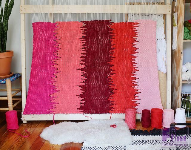 Такой коврик выглядит, как дизайнерская и довольно дорогая вещь. Причём при взгляде на него сразу ясно, что это – ручная работа! А поскольку наш «ткацкий станок» сохраняет свой функционал, Вы можете соткать ещё не один такой прекрасный коврик, подбирая интересные и яркие цвета пряжи.