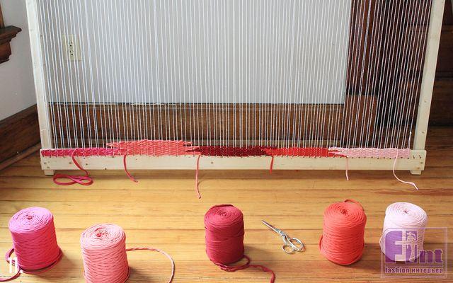 Шаг 7: Продолжайте ткать, повернув пряжу назад. Каждый раз останавливайтесь в разных местах, чтобы создать волнообразный рисунок. Старайтесь, чтобы пряжа ложилась ровно и с хорошей натяжкой, но без сильной деформации хлопковых нитей.