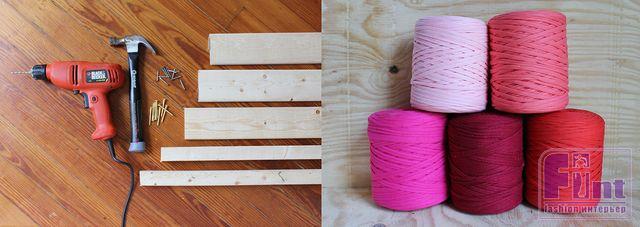Для изготовления этого оригинального коврика нам потребуется создать почти настоящий ткацкий станок из подручных средств! Причём, это приспособление, напоминающее ткацкий станок, послужит Вам не один раз, и Вы сможете плести такие коврики себе и в подарок своим близким.