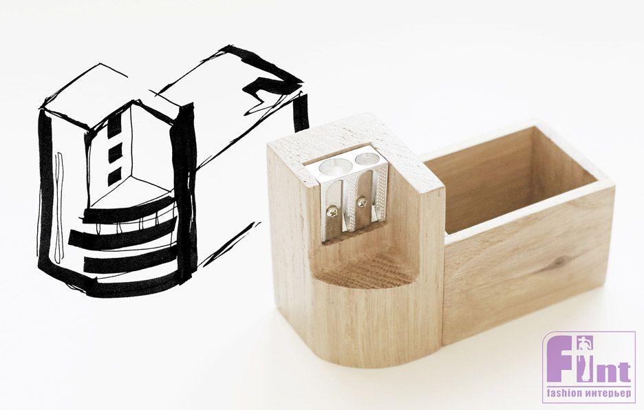 Петербургские дизайнеры Настя Коптева и Саша Браулов создали деревянный канцелярский набор, каждый предмет которого по форме напоминает один из ключевых памятников русского архитектурного авангарда.