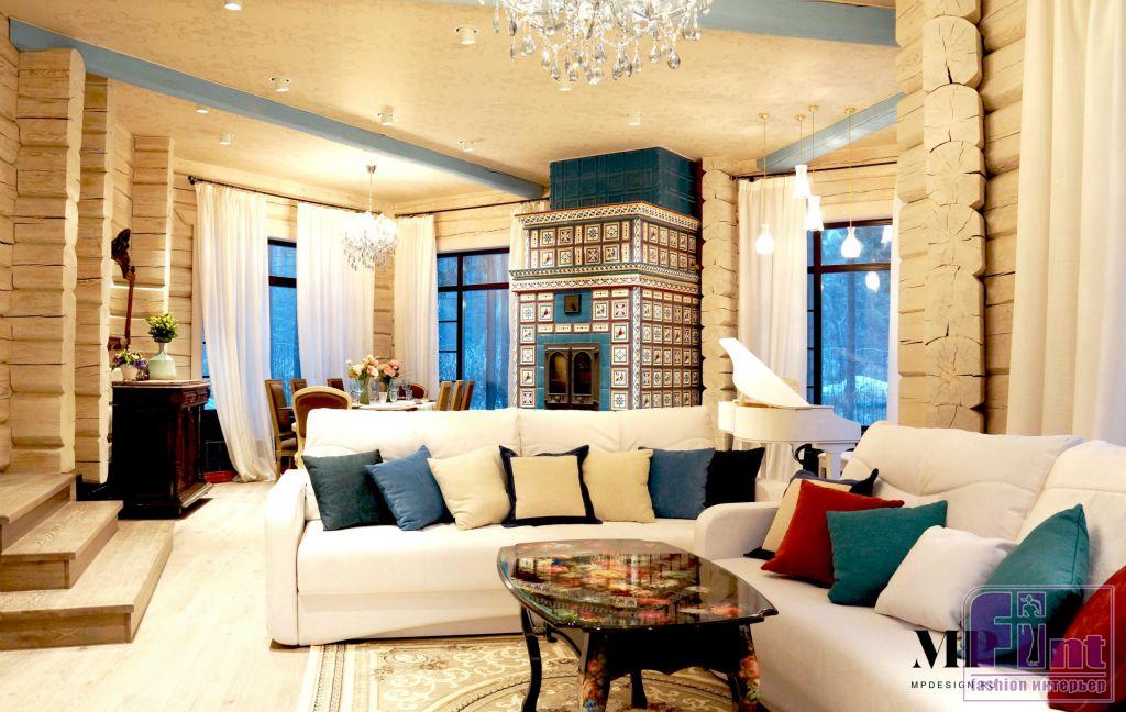 Основные акцентные детали – это элементы декора и мелочи, дизайнер лично создавала некоторые из них, специально для этого проекта. Особое место в гостиной Жигунова занимает невероятная печь с яркими изразцами. Печь, кстати, изготовлена российскими мастерами по образцу, который Жигунов увидел в продаже и захотел повторить его в своём новом «родовом гнезде». Получилось невероятно гармонично и стильно!