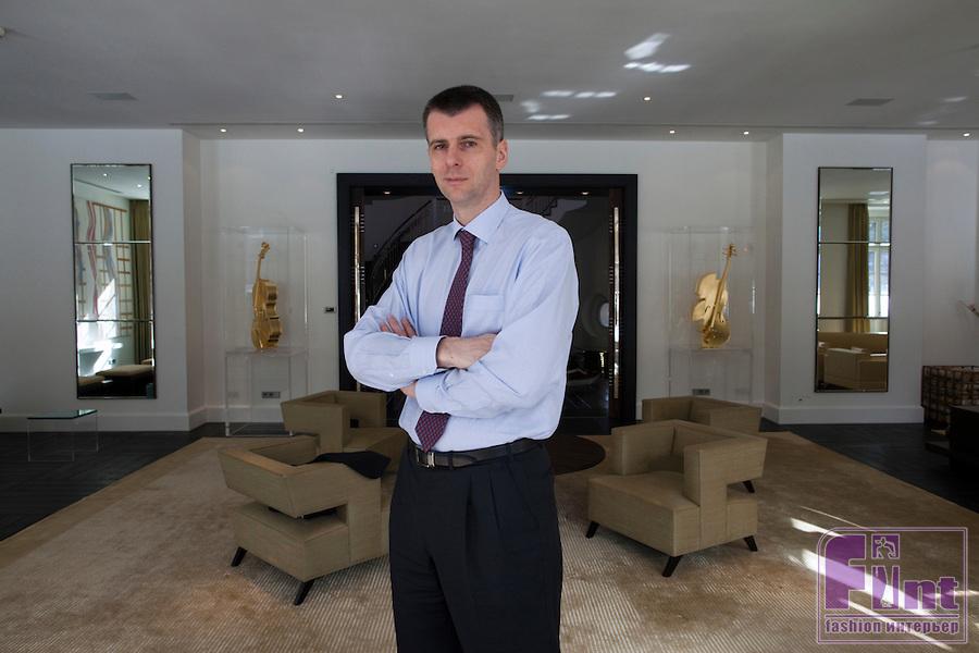 Прохоров живёт в большом доме площадью более двух тысяч квадратных метров. Этот огромный дом Прохоров делит со своей старшей сестрой Ириной, которая занимает одно из крыльев особняка. Вестибюль дома отделан чёрным мрамором, что придаёт ему особенный колорит. Просторная гостиная напоминает отель-бутик: белые кушетки с подушками, ковры, кубические кресла, современные живописные картины на стенах и дизайнерские аксессуары. Обстановка гостеприимства налицо.