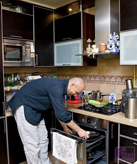 Прикидывая «архитектуру» жилища, гостеприимный хозяин решил разместить на самом видном месте кухню с барной стойкой. А центр композиции отвёл огромному (к тому же раздвижному) обеденному столу: «Мои друзья любят поесть. Я и сам не прочь. Мало того, мне подозрительны люди, которые плохо едят. (Смеётся.) Кухню я сделал на возвышении, потому что для меня это немножко сцена, на которой я играю роль повара». Готовить Максим научился, когда в 21 год, после окончания Щукинского училища, стал жить отдельно от мамы. Тогда он обнаружил, что даже не понимает, как вода превращается в бульон. Пришлось спрашивать советов у подруг. Зато теперь актёр радует друзей уникальными кулинарными шедеврами, сочетая в одном блюде необычные продукты.