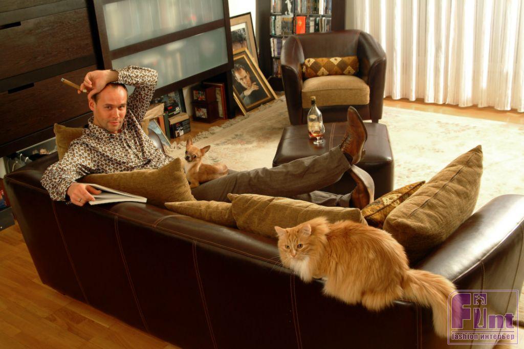 Обустраивая квартиру, ошибся только один раз, и это, кстати, не касается собственно интерьера. Я установил джакузи. Но вы попробуйте лечь в джакузи в пять утра (а в сериалах съёмочная смена и в шесть утра иногда заканчивается) — в ночной тишине вода так грохочет, что никакого расслабления не получается! «Насладился» джакузи два раза и решил заменить его ванной на ножках — на неё меня вдохновил колониальный стиль фильма «Английский пациент». Вот чего я точно не мог предусмотреть, это что под окнами моей спальни каждое воскресенье в 9 утра, увлечённо вскрикивая и матерясь, мужики будут играть в футбол. Иногда так хочется спустить на них львов — у меня в гостиной висит панно с двумя бронзовыми «кошками».