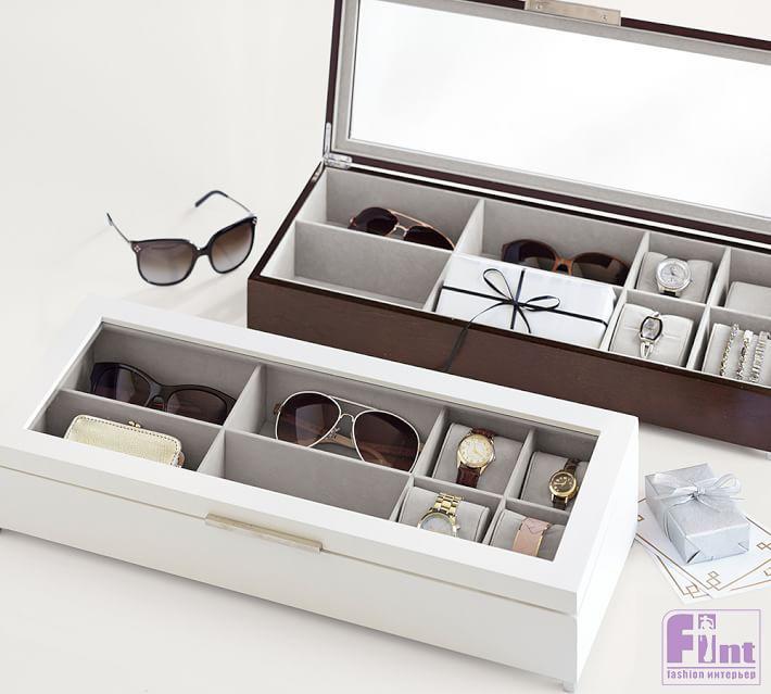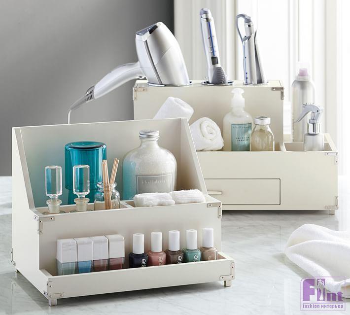 В магазинах масса красивых коробочек, баночек, органайзеров и мешочков для хранения всего, чего угодно. Разумеется, вы можете приобрести что-то, что делает вас счастливыми, и радует глаз, стоя на видном месте.