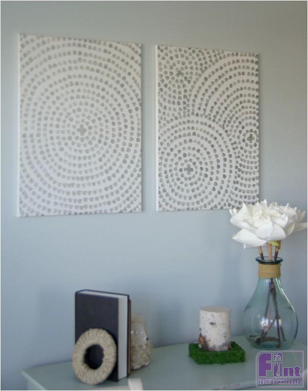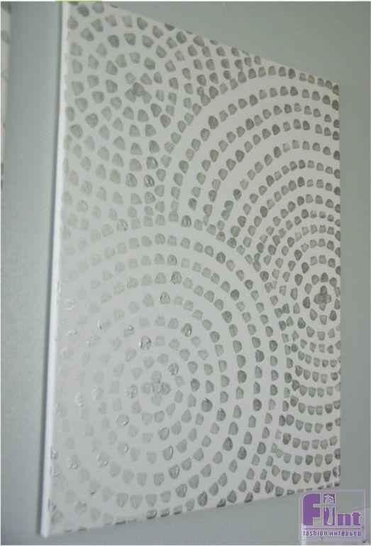Для создания оригинальной модульной картины нам понадобится два больших холста на рамах серая, блестящая акриловая краска и широкая плоская художественная кисть. Для начала можно попробовать поиграть с узорами и проекцией на обычном листе бумаги. Отложите холст и сделайте узор, который потом можно повторить на материале.