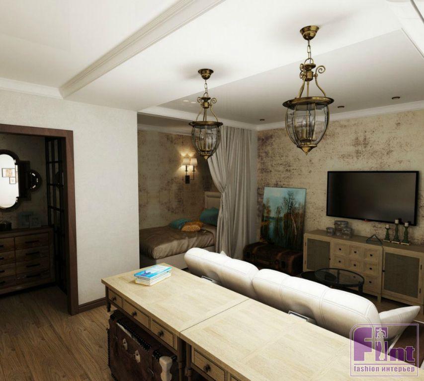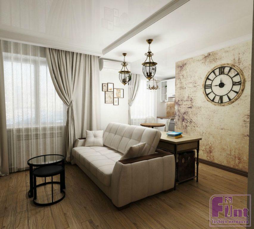 Екатерине и Елене удалось реализовать проект полноценного жилого пространства на довольно небольшой площади – всего около 30 квадратных метрах. При этом интерьер получился не просто удобным и тщательно продуманным, но и довольно стильным. Особый шарм интерьеру добавляют необычные подвесные светильники в зоне кухни и гостиной. Светильники выполнены в едином стиле с использованием кованых металлических деталей и прозрачных «воздушных» плафонов, добавляющих лёгкости всему интерьеру.
