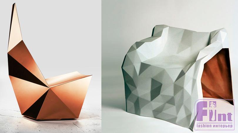 Предметы интерьера, формой похожие на оригами или на кристаллы с их сложными гранями, на первый взгляд могут показаться несколько хаотичными, однако это любопытное направление. Такая мебель, даже не будучи выпущенной эксклюзивным тиражом, выглядит очень индивидуально. Глядя на неё, вы скорее подумаете, что это галерейный продукт, а не массовый. Поэтому эстетика многогранности очень привлекательна. Игра света и тени, излом поверхностей особенно приковывают внимание к этим предметам в интерьере.