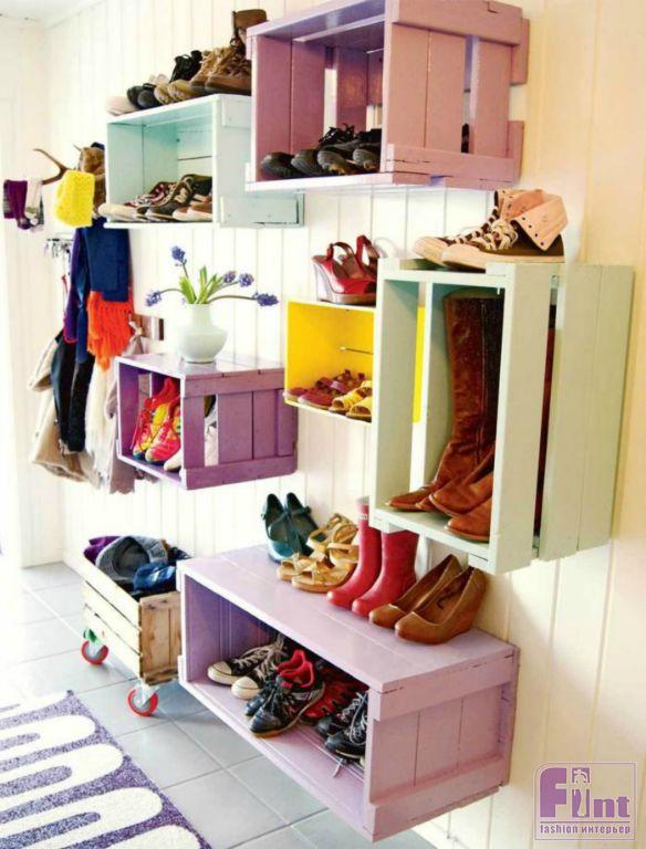 Эта неизменная и весьма многочисленная «деталь» интерьера действительно способна испортить любой дизайн. Как бы вы ни старались, обувь не сможет гармонировать с интерьером прихожей, хотя бы потому, что ботинки и тапочки далеко не всегда будут иметь презентабельный вид или подходящий по дизайну интерьера цвет. В большой семье горы обуви разного цвета и размера постоянно будут мозолить глаза. Наилучшей идеей будет закрытая обувница. Если же всё вместить туда затруднительно, можно воспользоваться более оригинальными идеями.