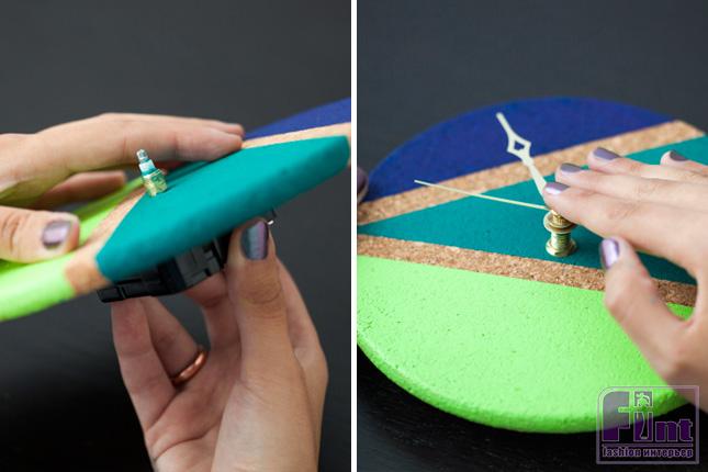 4. Настало время перенести придуманный рисунок на часы. Для этого воспользуйтесь малярным скотчем, выполнив пошаговое окрашивание в несколько цветов.