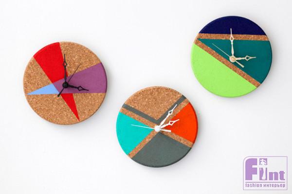 Настенные часы уже давно утратили свою прямую функциональность и по большей части перешли в предмет декора интерьера. Если заглянуть в часовые магазины, или в многочисленные интернет-магазины часов и товаров для дома, то можно обнаружить невероятное количество форм и расцветок настенных «измерителей времени». Но можно пойти и другим путем — сделать свои собственные, абсолютно уникальные, настенные часы. Стоит отметить что такие часы с гордость можно будет назвать дизайнерскими, так как вторых таких Вы не найдете. Сегодня мы как раз предлагаем Вам проект о том, как самим сделать такие оригинальные часы. Причём, наш мастер-класс предлагает сделать не одни, а сразу трое часов в одном стиле, чтобы использовать их в качестве стильного декора равномерно окрашенной стены, или стены с фактурными стеклообоями под покраску.