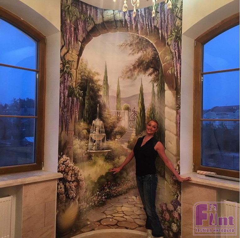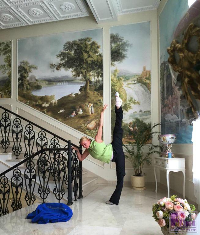 Декор балерина подобрала в соответствии со своим художественным вкусом, сделав основной акцент на фресках, выполненных по картинам её любимого живописца Николя Пуссена. Белый рояль для гостиной балерине подарил Николай Басков. Особенная ценность инструмента не столько в его преклонном возрасте, сколько в былой принадлежности «Золотому голосу России». В общем, и размерами, и убранством дом напоминает Большой театр! Ассоциации с оперным театром или дворцом отчётливо проявляются уже при входе, когда видишь шикарную мраморную лестницу, ведущую из холла на второй этаж.