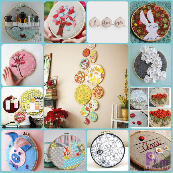 Возьмите однотонную светлую ткань, «напишите» яркой ниточкой приятные слова или признание в любви. Всего три слова для любимого человека. Повесьте в спальню - пусть каждое утро начинается с этих слов. Кажется банальным? Возьмите маркер для ткани и напишите целое письмо или лирический стих. Приколите к натянутой ткани иголочкой фотографии с памятным сюжетом и меняйте их по настроению. Сделайте в пяльцах кармашек, и они превратятся в отличный органайзер. Даже если просто натянуть на пяльцы красивую ткань и сделать несколько таких Hoop Art изделий, то из них можно составить отличное интерьерное панно, которое прекрасно впишется в любой интерьер.