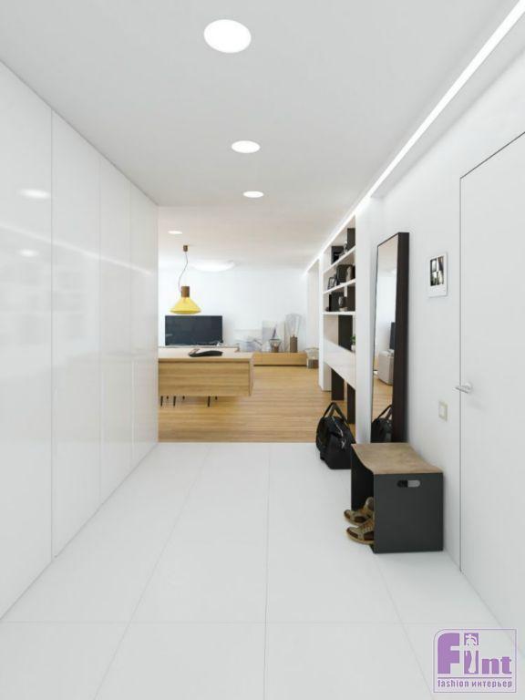 Оригинальные осветительные приборы и интерьерные картины заметно оживили интерьер. Белый глянец квартиры сочетается с тёплым деревом, что создаёт ощущение уюта, но излишне не расслабляет. Минимализм и натуральные фактуры свойственны всем помещениям квартиры.