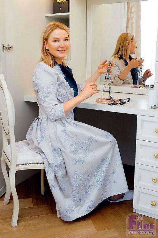 — Даже не знаю, что бы я без них делала. Очень меня выручает эта хозяйственная мини-комната. Полноценной гардеробной у нас не получилось, так что остановились на этом варианте. Всё спроектировано так, что не надо доставать и раскладывать гладильную доску. Открыл двери шкафа — и можно гладить. Еще одно удачное решение — мой небольшой будуар. Изначально в бетонной конструкции дома в этом месте была ниша. Туда напрашивался либо шкаф, либо компьютерный стол. Я подумала, что у меня всегда была проблема, где хранить косметику и различные аксессуары: ремни, заколки, бижутерию... В общем, все женские штучки. В предыдущей квартире я всё держала в шкафу, где было бельё. Очень неудобно. Так возникла идея сделать женский будуар. Мне очень нравится, что, даже если в этой зоне беспорядок, двери можно просто закрыть, и никто не узнает мою маленькую женскую тайну. (Смеётся.)