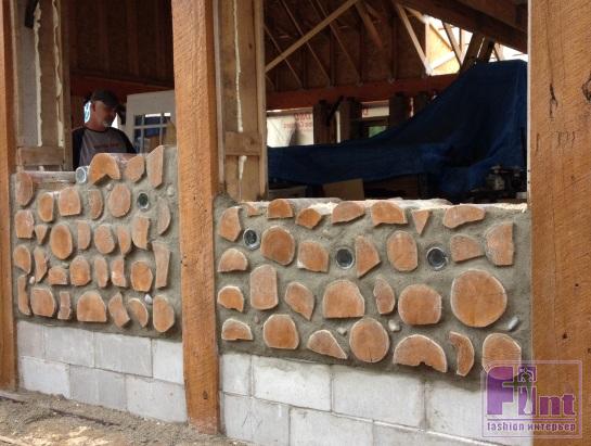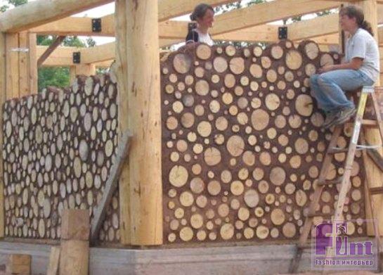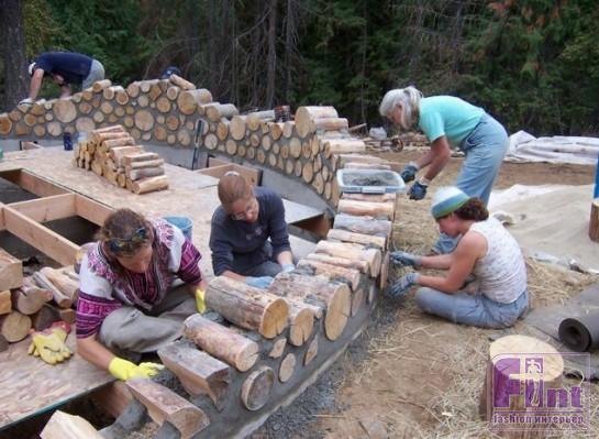Строительство дома из дров и глины напоминает кирпичную кладку. Только вместо кирпичей здесь используют поленья, а вместо цементного раствора (хотя иногда используют и его) – смесь глины с песком и резаной соломой. Деревянные чурки укладывают не вдоль, а поперек стен (так же, как складывается поленница из дров). Прочно связывая «деревянные кирпичи», глина обеспечивает стене исключительно высокую прочность.